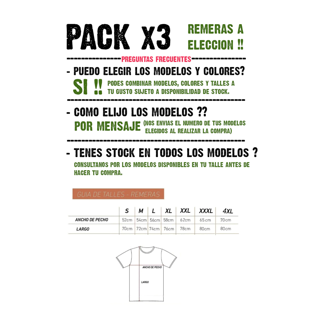- Para realizar tu compra solamente debes ingresar 1 unidad que equivale al combo de 3 remeras.